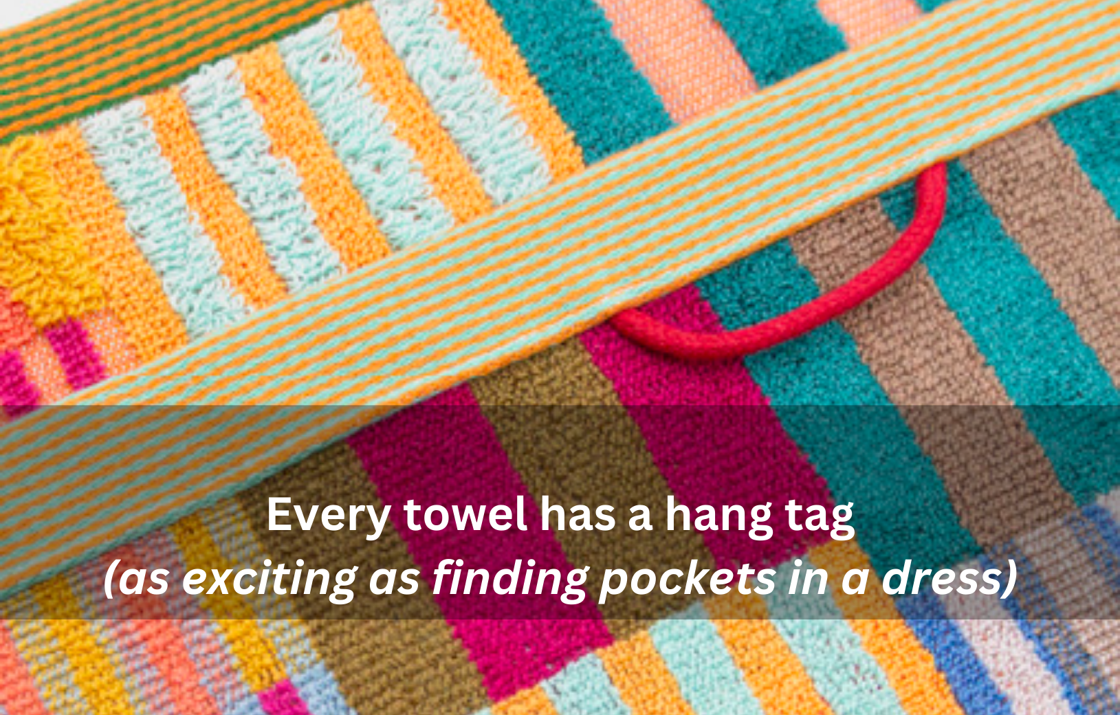 A medium sized bath towel, as you know it, but more colourful for sure. 60 × 120 cm and not too heavy for quick drying and less laundry; 450 gms.